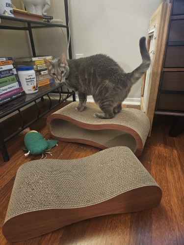 My cat loves it and its stronger cardboard than the ones sold at walmart, barely any cardboard bits after a week of use.